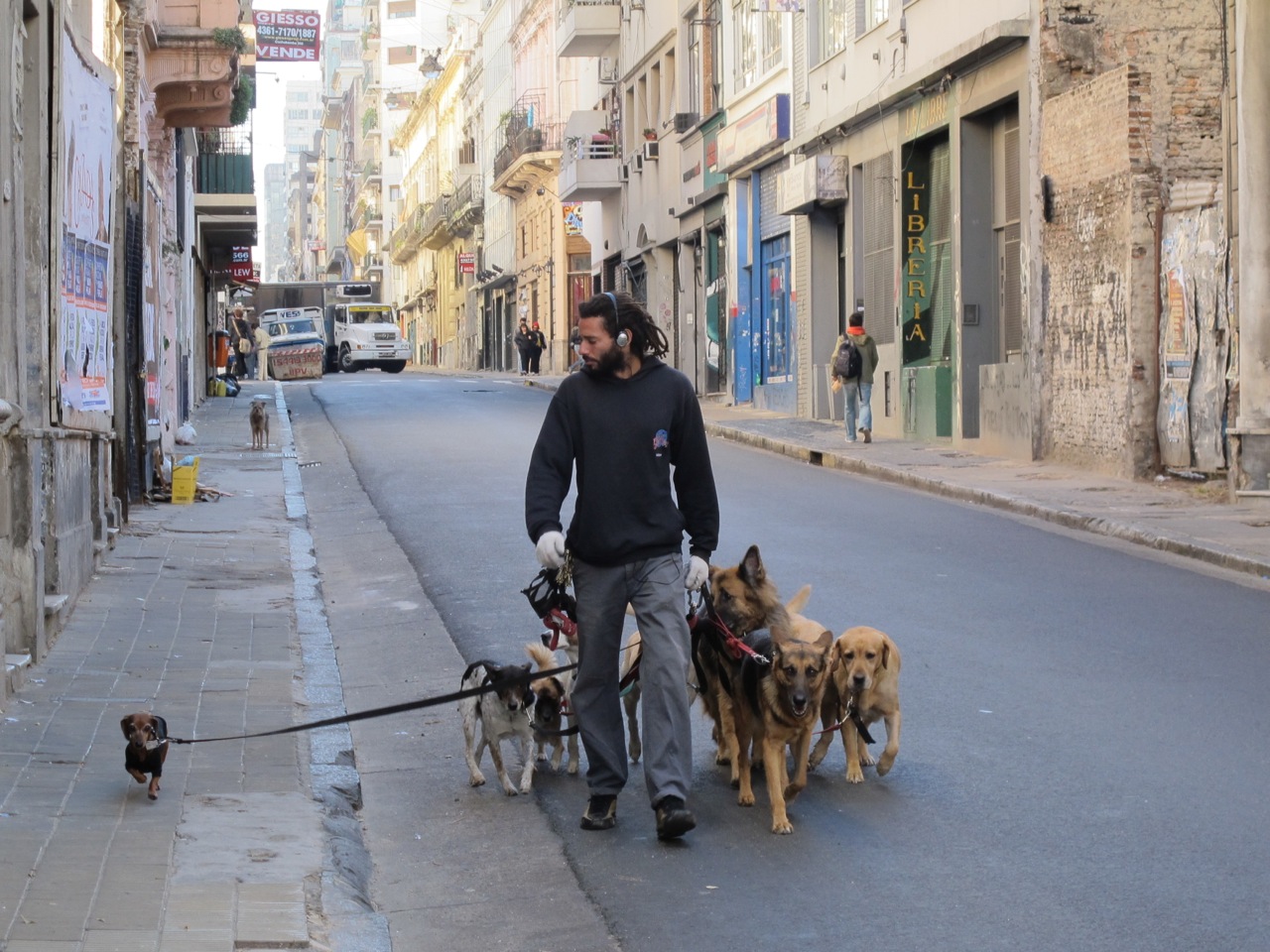 From the air Buenos Aires reminds me of Asian cities of years ago – lots of high-rise, dirty, rundown, electrical wiring everywhere … then you notice the excellent road system. There are 16 lane wide major roads divided into 4 lane stretches intersected with planted pedestrian strips. One way avenues of six lanes wide surround a grid of two lane roads called caldes, one way again – one lane for parking and one for driving. The roads are named and numbered logically – a bit like New York, except that the names are more interesting – and if 50% of the street signs were not missing it would be easy to find your way around. An incredibly sophisticated and well thought our road system.